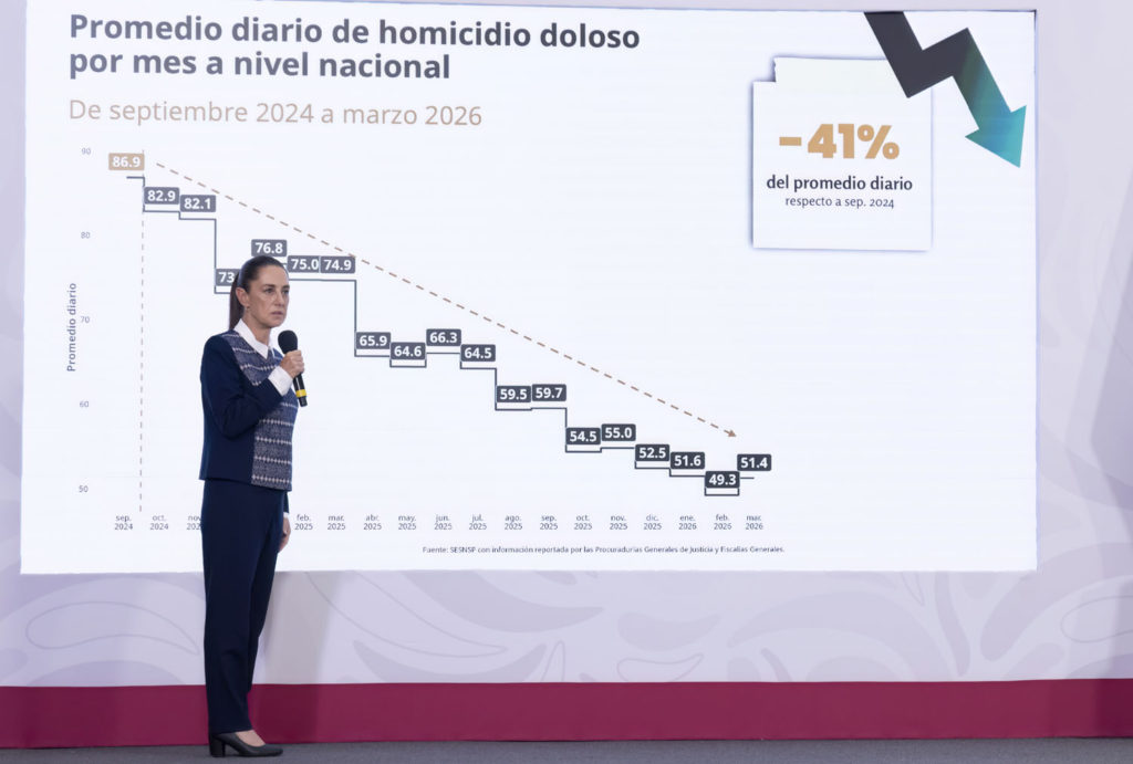 La Presidenta de México, Claudia Sheinbaum Pardo, demostró con hechos y cifras que la pacificación del país es una realidad en marcha. Al presentar los resultados preliminares del primer trimestre de 2026, la mandataria destacó una reducción histórica del 45 por ciento en los homicidios dolosos respecto a 2024. Estos números dejan en claro que la estrategia de atender las causas y combatir frontalmente la impunidad, sello distintivo de la Cuarta Transformación, está dando frutos en todos los rincones del país, impactando positivamente en estados como Oaxaca, donde la tranquilidad social es el motor de nuestro desarrollo.