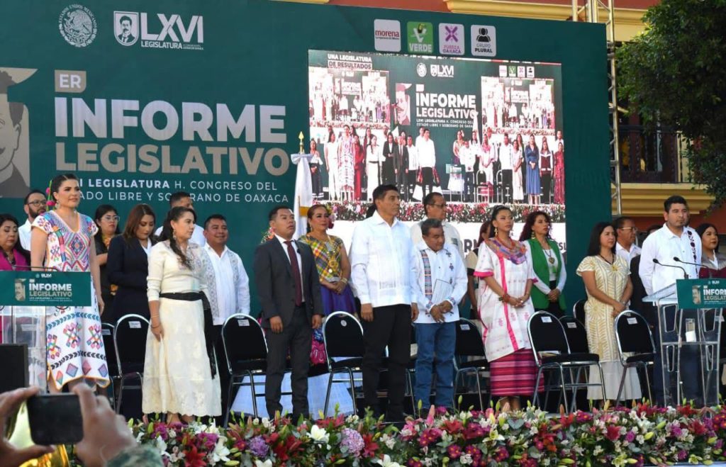 El informe demostró la fuerza de la alianza que impulsa la transformación, contando también con la participación destacada de legisladores del PVEM, como Eva Diego Cruz, y de Fuerza por Oaxaca, como Isaías Carranza Secundino.